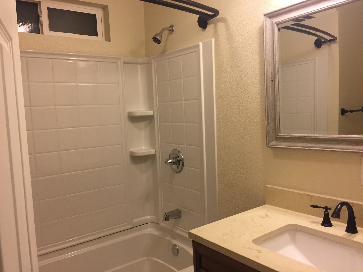 This upstairs 2 bedroom, 1 bath update with 2" wood blinds, Kitchen features granite counters with gas range µowave hood and ceiling fans through-out.